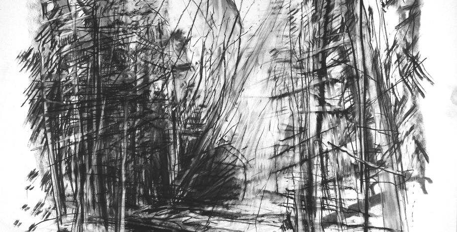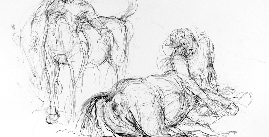 These drawings are a small sampling of those that were generated from an experimental collaboration project with a composer and a poet to create a series of artworks loosely based on the forth labor of the tragic hero Herakles, Capturing the Erymanthian Boar. Scores of charcoal drawings and computer variations were strung together in a narrative sequence in a short stop-motion animated video. An original musical composition by John McKinnon adds drama and the poem, Inside of Us He Died, by Kevin Cahill, provides a narrative.